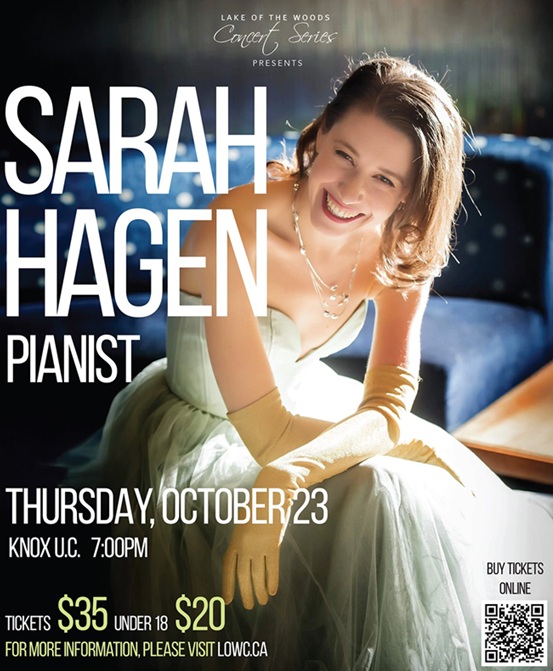 Award winning Canadian pianist Sarah Hagen has come to our region to give a pair of concerts in Kenora and Sioux Lookout.