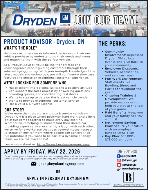 To apply, please visit https://jobs.canadapost.ca/job/Dryden-Letter-Carrier-Delivery-Agent-ON/601775217/ Canada Post is an exciting place to work! And you can be part of it! We deliver billions of items...