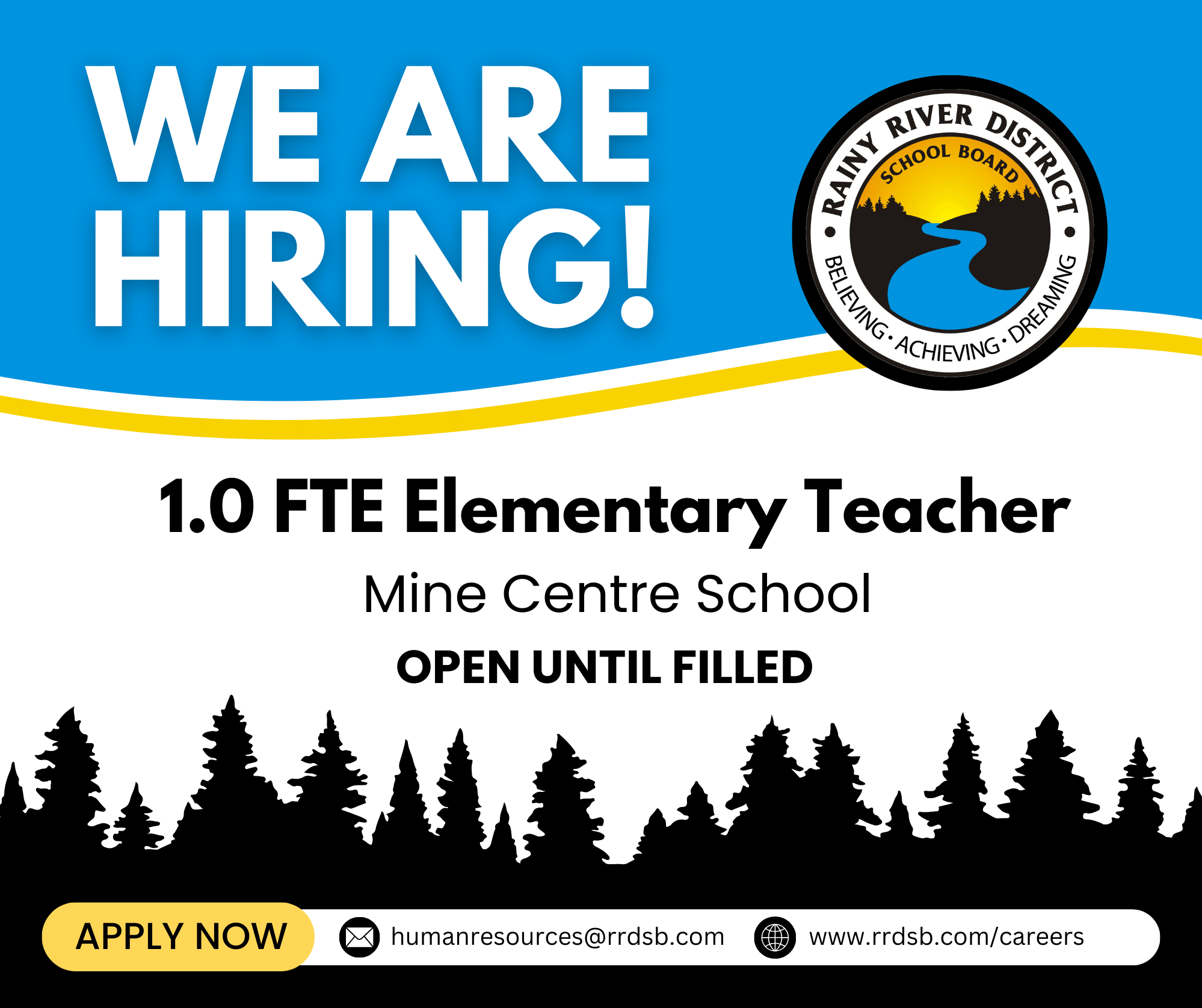 The Rainy River District School Board is seeking a dedicated Elementary Teacher to join our education team at Mine Centre School.