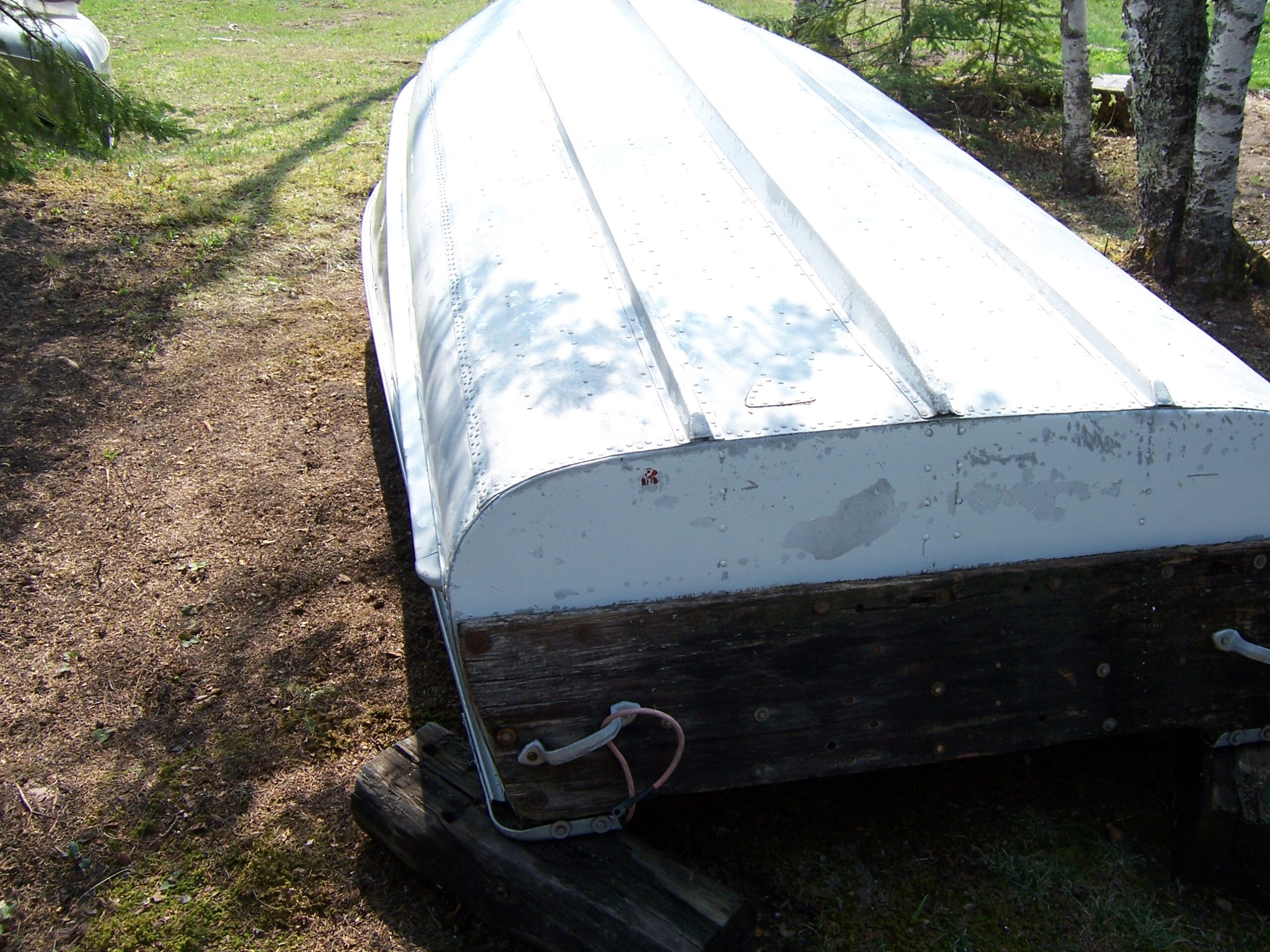 Will take a 60 h.p. max. Good boat to get started with and with some repairs an economical run about or fishing boat.