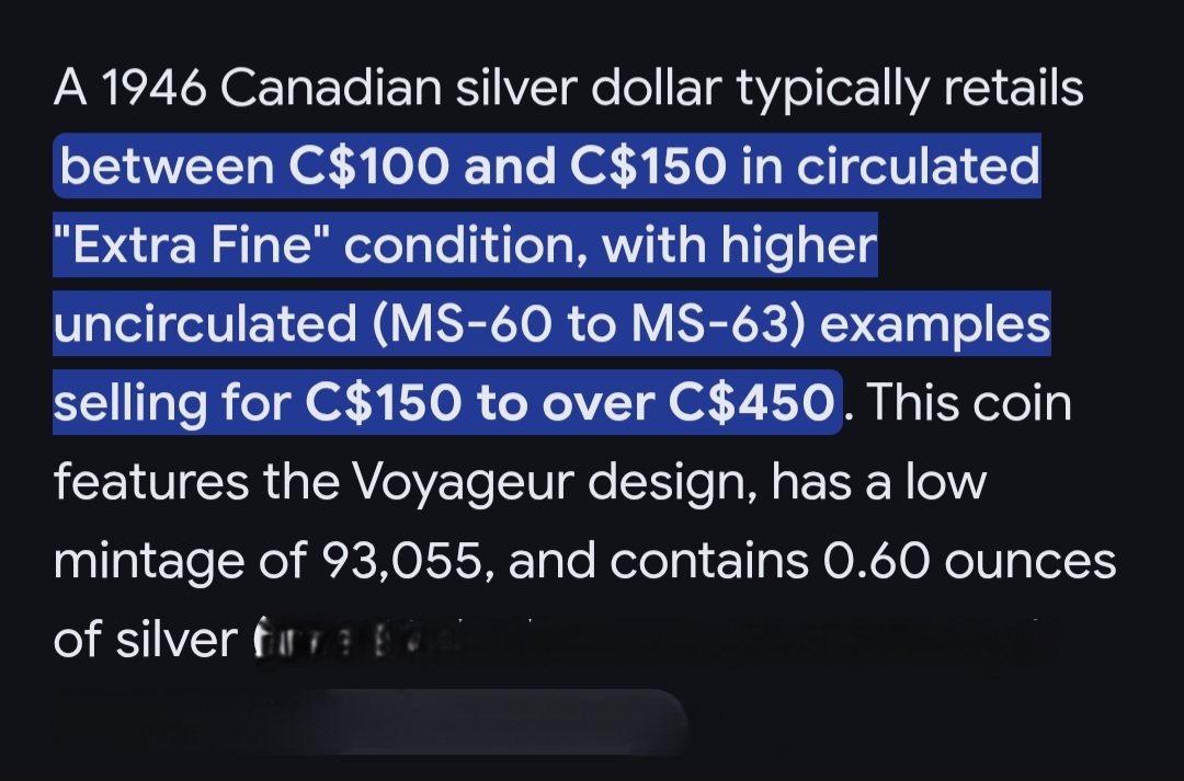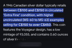 1946 Canadian Silver Dollar, this 80 year old Coin is in
