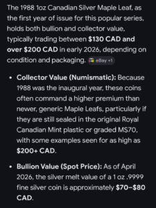 Extremly collectable and valued for collectors as 1988 was the inaugural (1st year for these coins)