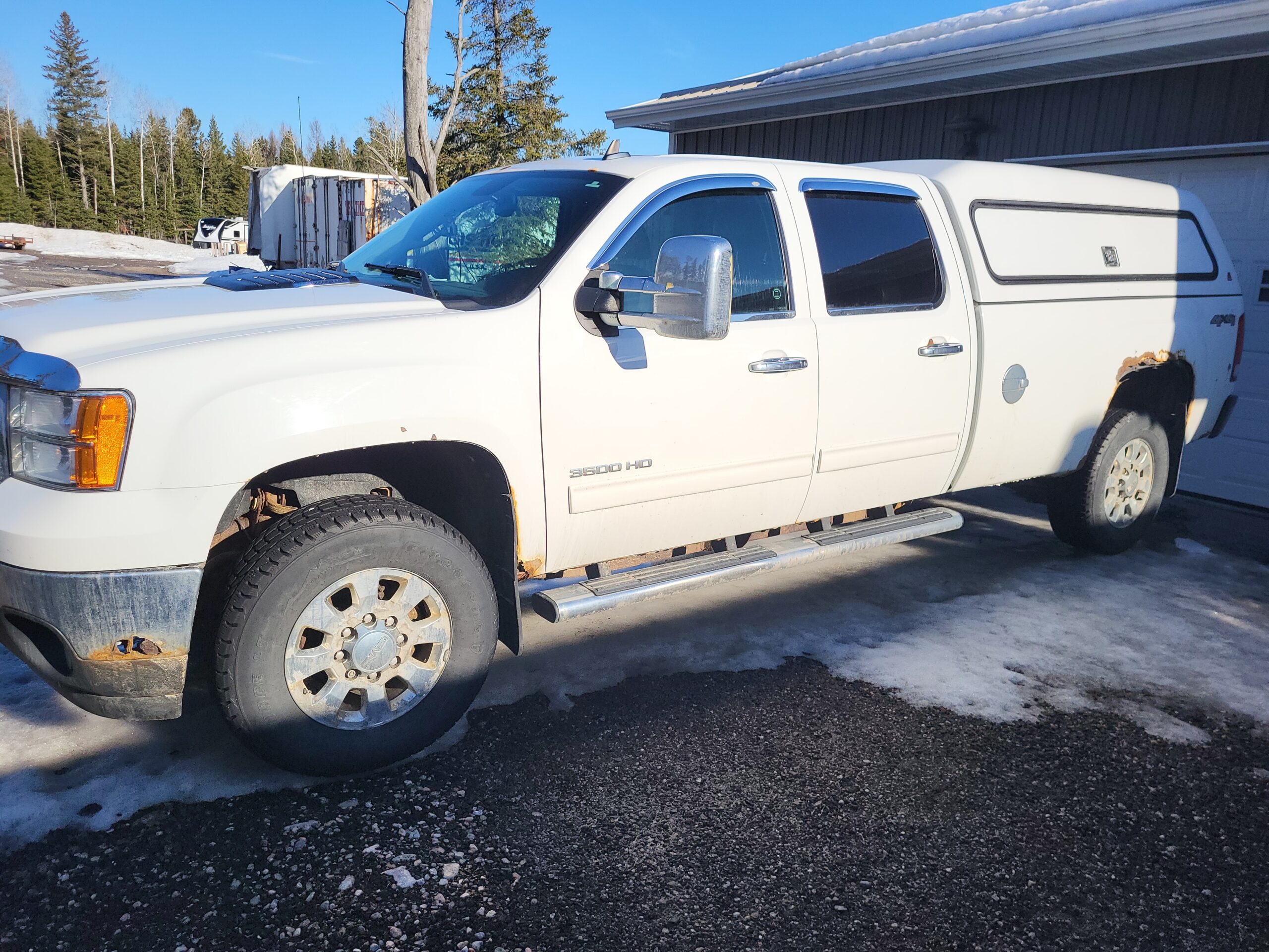 2014 Sierra 3500 diesel. Truck is excellent mechanically and runs perfect but rusted all to, ummm, crap. Comes with topper with tool boxes, 3,000 watt inverter, and all the normal nice stuff. Just under 208,000 KM. Will be sold “as is” w/o safety.