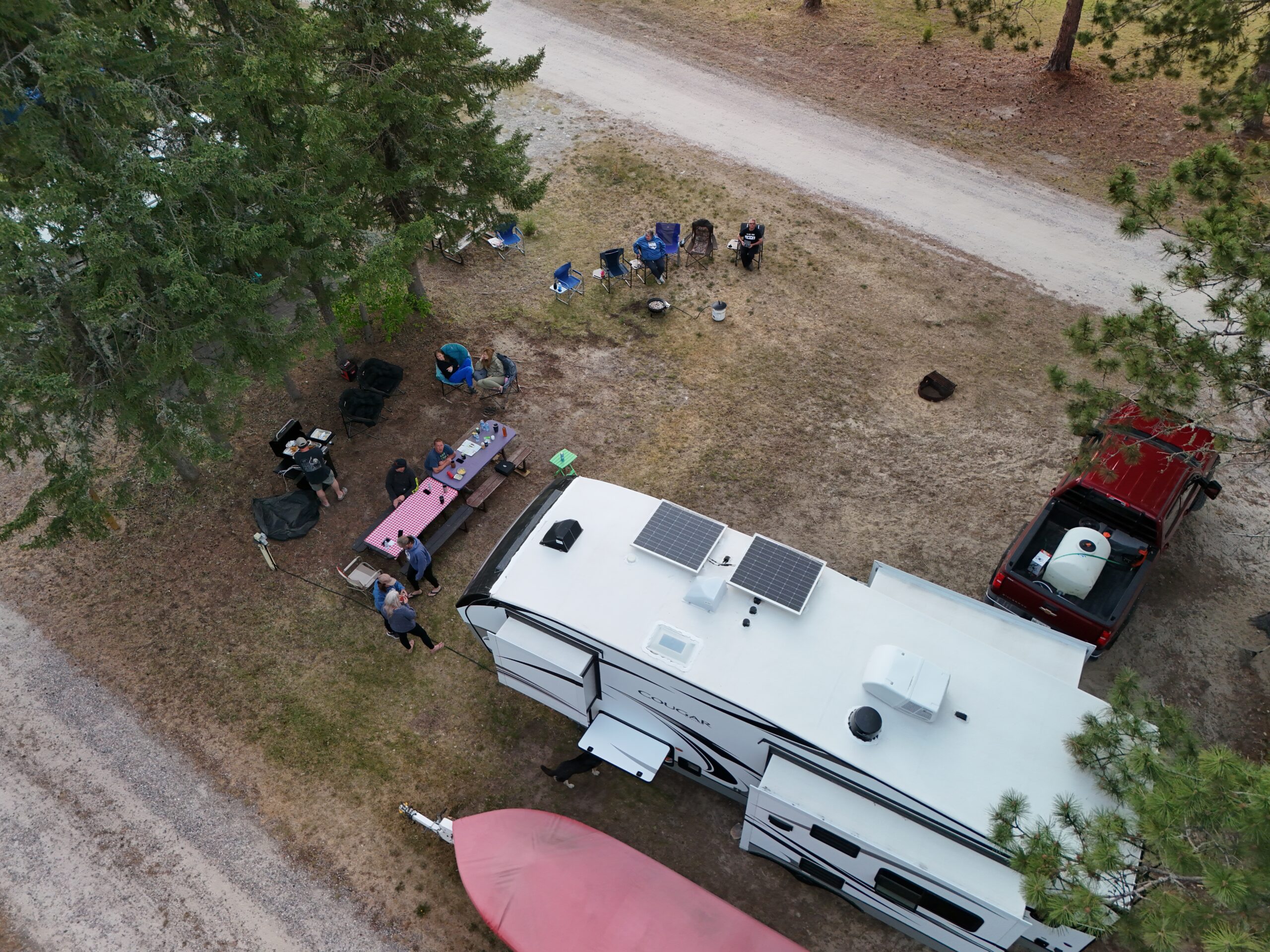 2022 Cougar 27sgs fifth wheel. Purchased new September 2023. Stored inside winter’s. Fully loaded. 3 Slides. Auto leveling, fire place, 400 watt factory solar upgrade, 30 amp charge controller with 2000 watt inverter factory wired to several outlets, dual batteries. 2 way fridge. 50” smart tv. Free standing dinette. Factory rear hitch and four pin traler wiring. Diamond kote package. Like new. Very few miles used sparingly on seasonal site for two seasons. I don’t currently have interior photos as camper is in storage but view utube video attached to add. With the two way fridge and 400I solar package this camper works extremely well off grid. New condition but save thousands compared to new. Only selling because now living on the lake and no longer required. Coming available as soon as the snow melts.$52,500 obo. May consider smaller couples camper as partial trade. Call 807-220-4853.