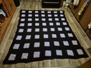 Hi folks I just finished this blanket its a queen size its available now if interested please contact me at 807 938 7202 or email me at jan.irvine@hotmail.com