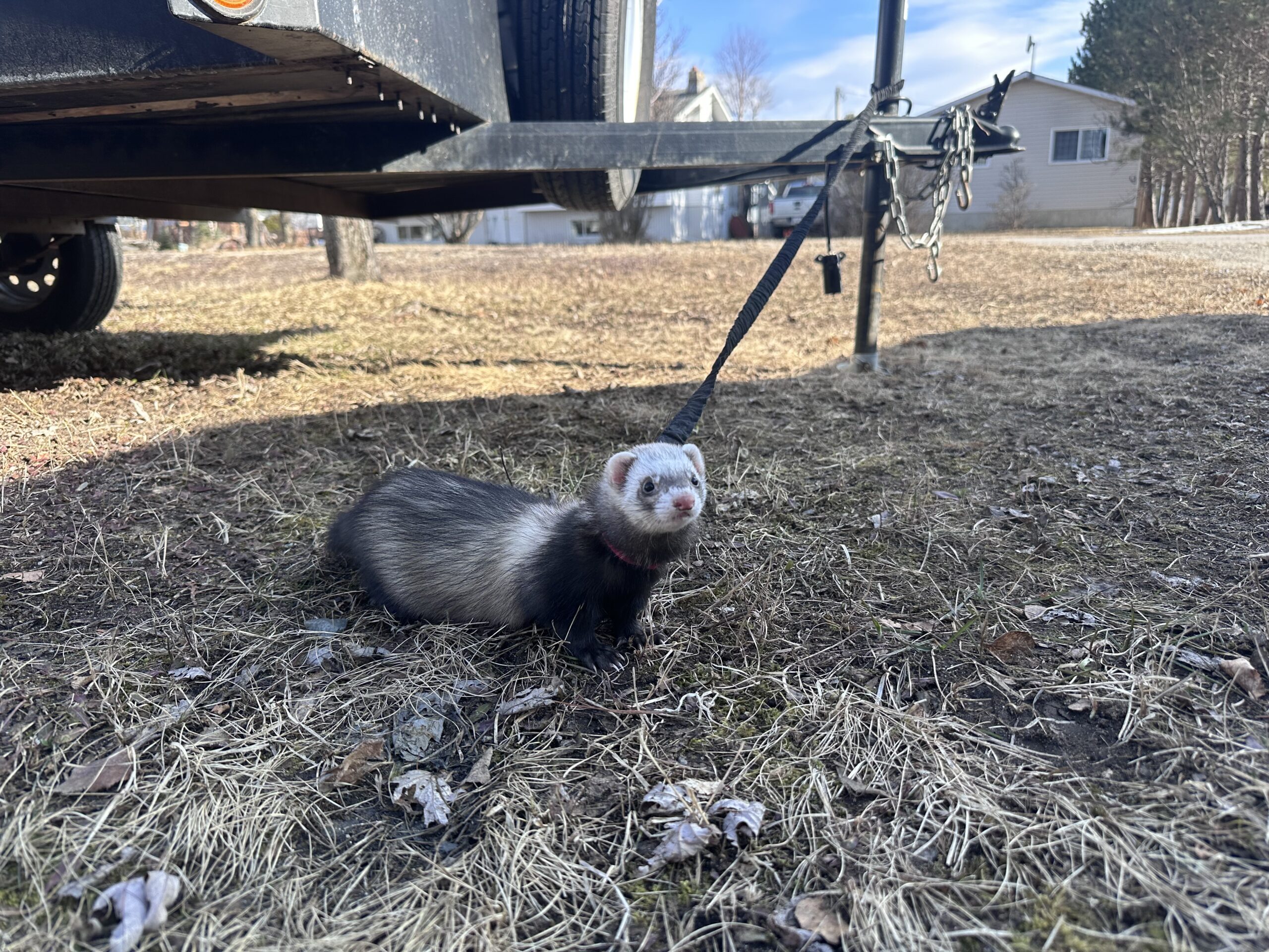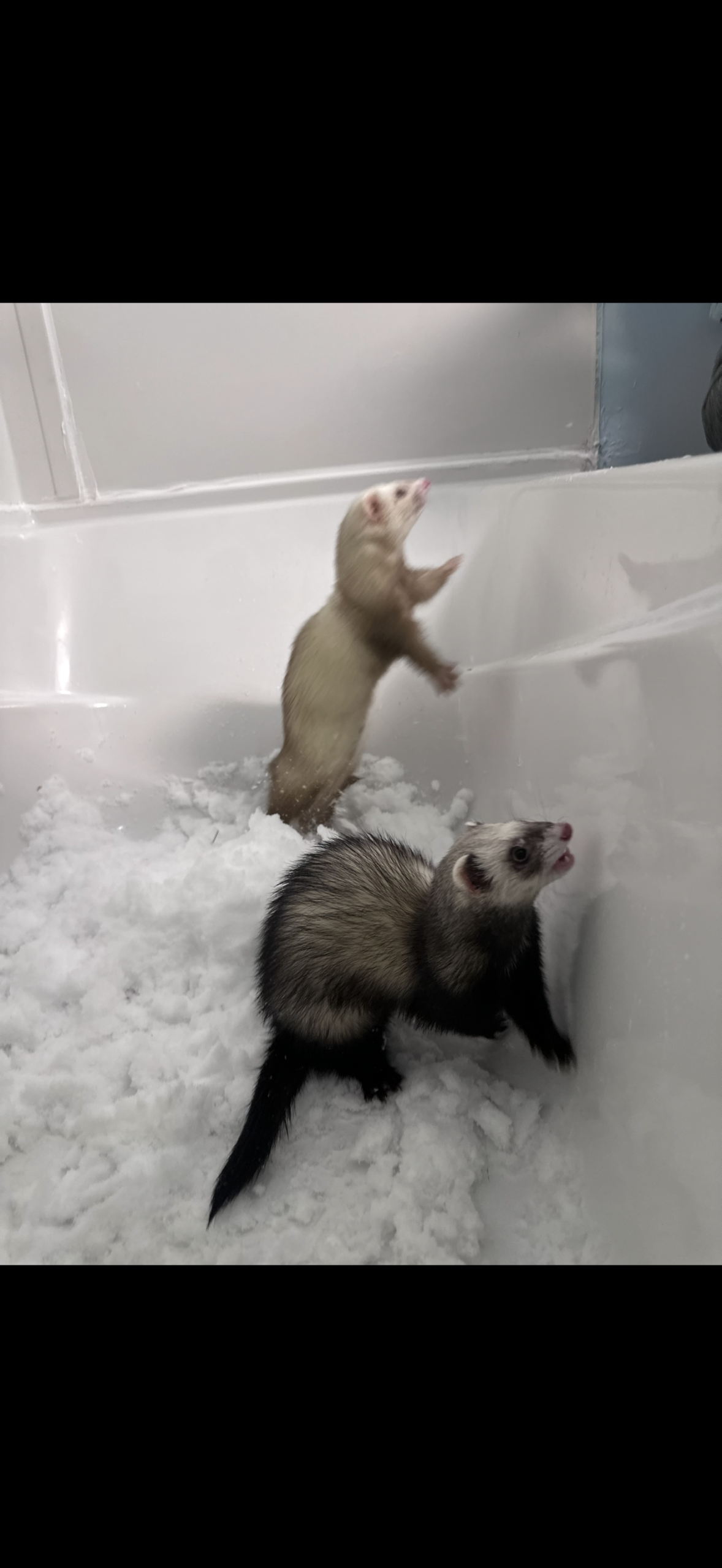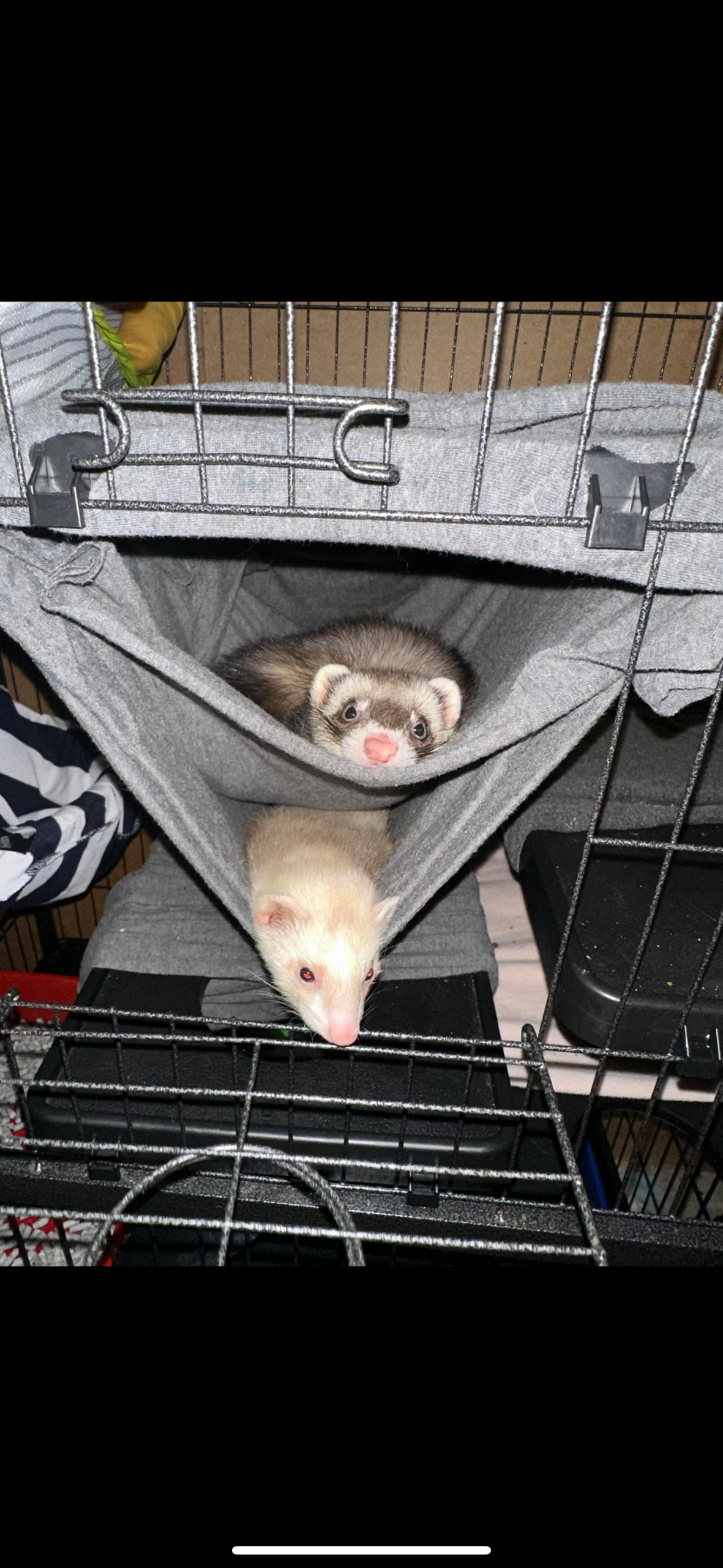 Two female ferrets for sale, looking to rehome together. Sable is the dark ferret, Dixie is the white, both are very well socialized with cats, dogs and children.
