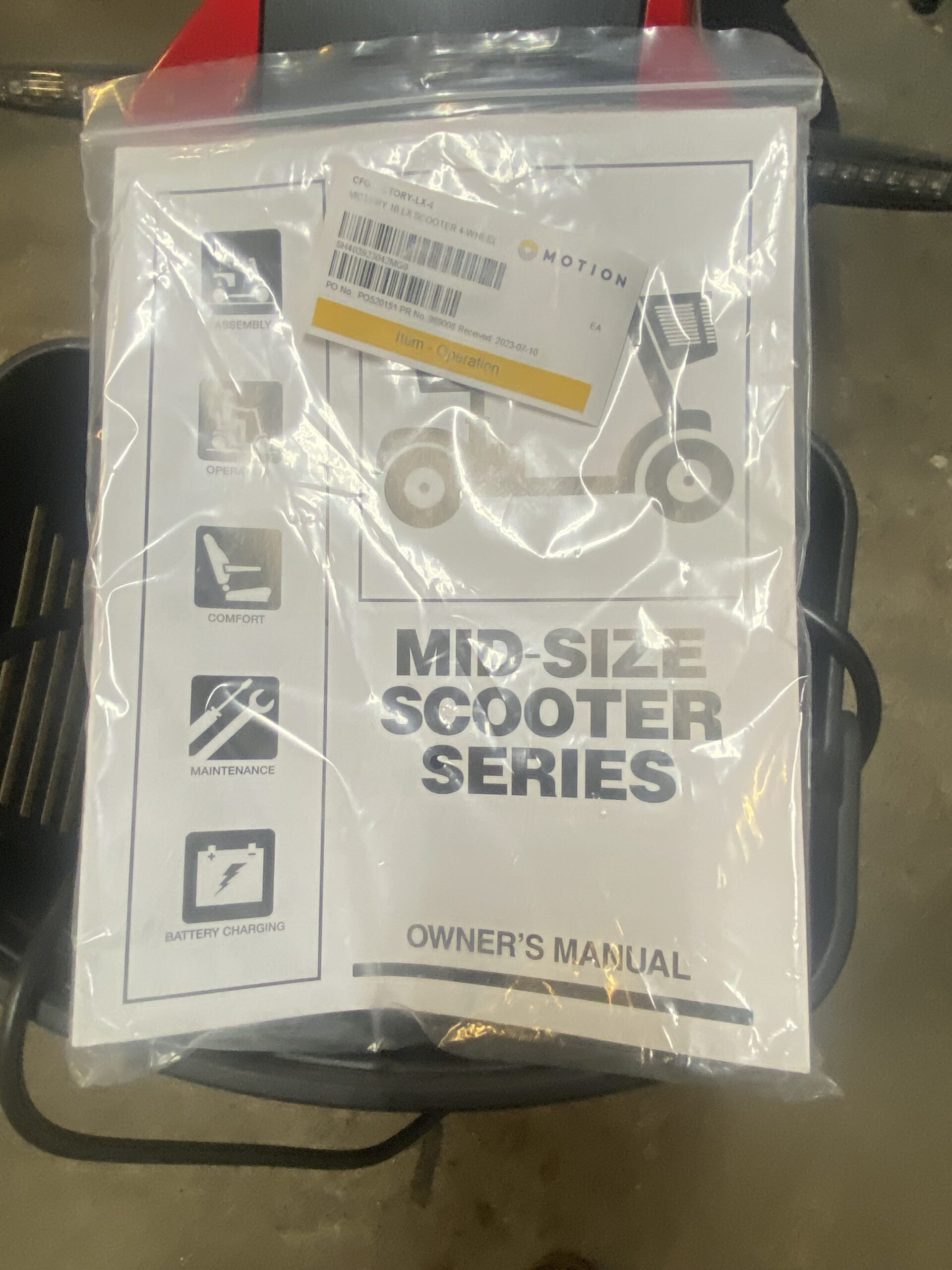 We have a mud size electric scooter for sale with only 10 hours on it. It has baskets in front and back a safety flag for when travelling down the road way Has owners manual and charger and a cover