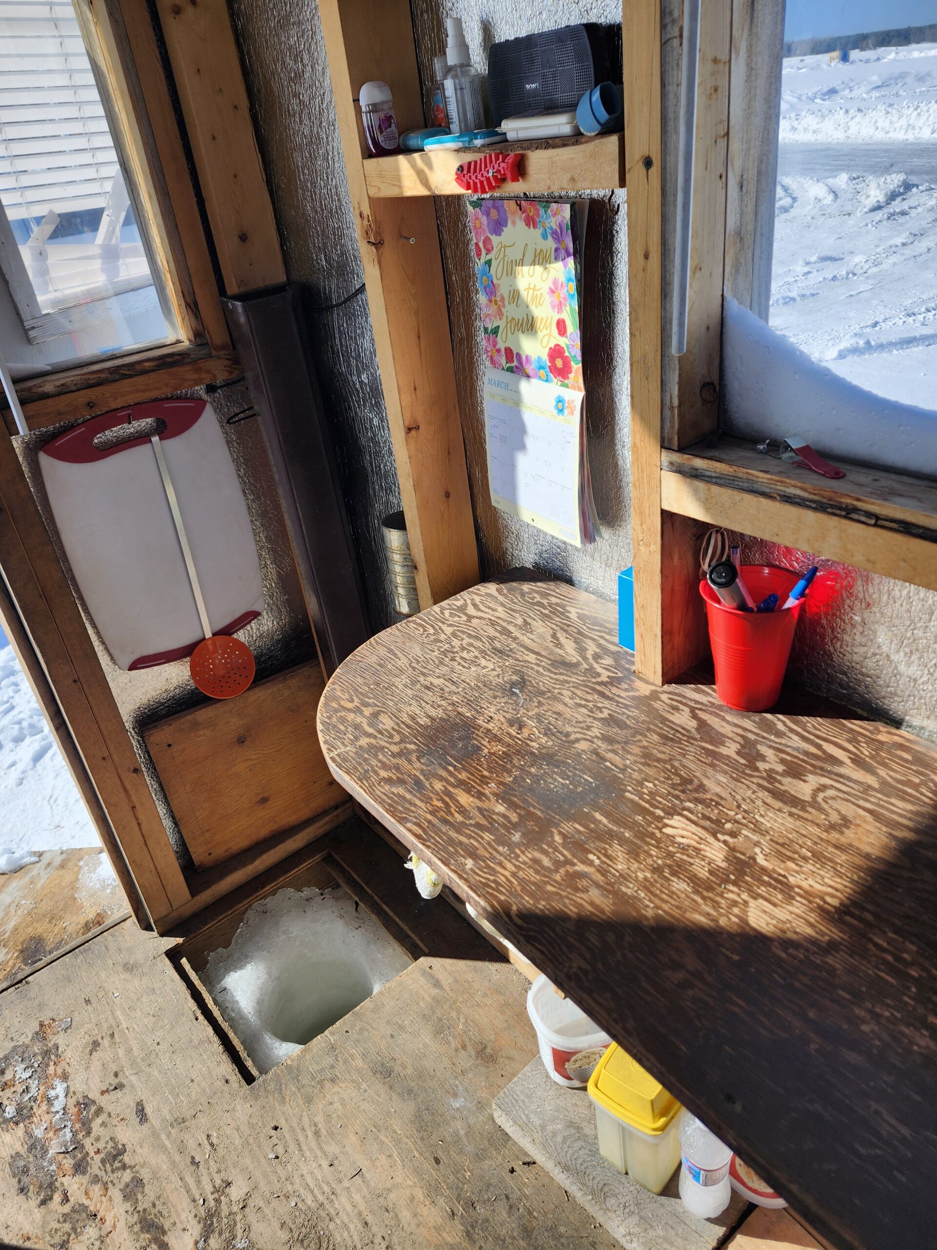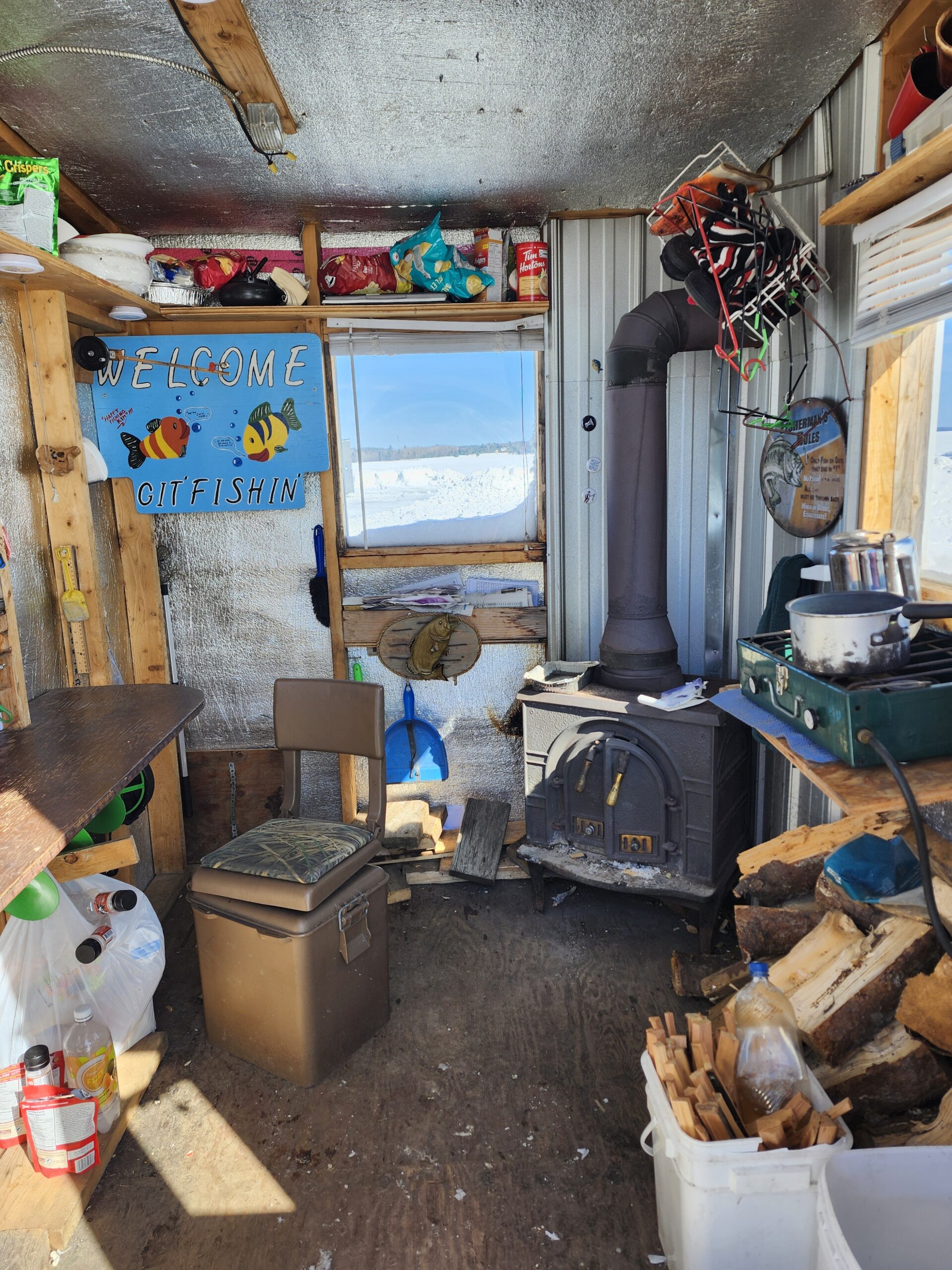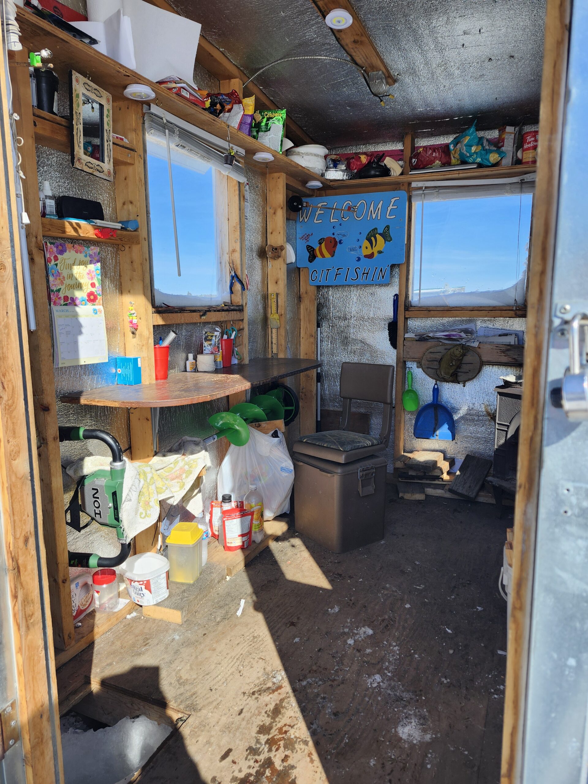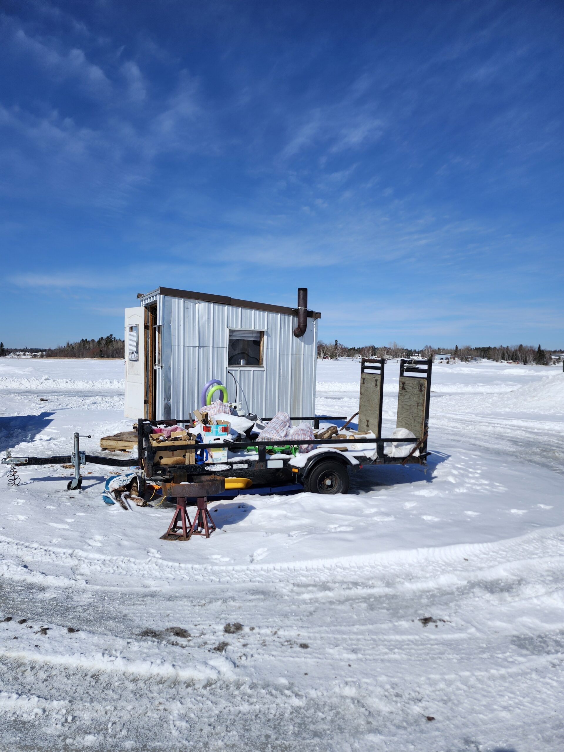 6×8 ice shack, cast iron wood stove, has 3 holes inside, 8 x 10 utility trailer. Set up left side off main ice road in dryden Firm $3000. Contact kim at 807-216-7571.