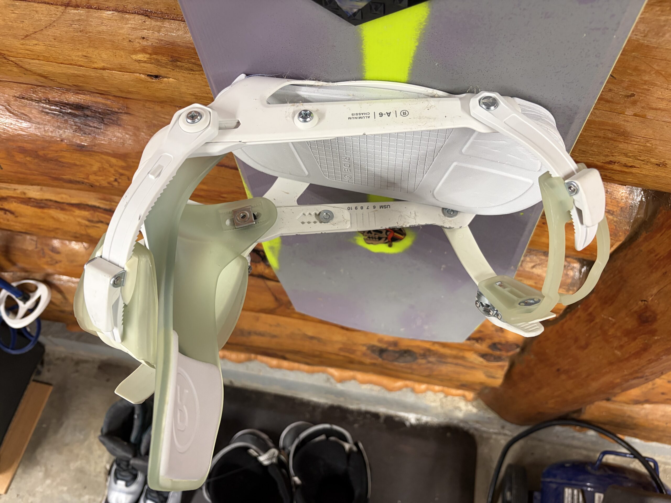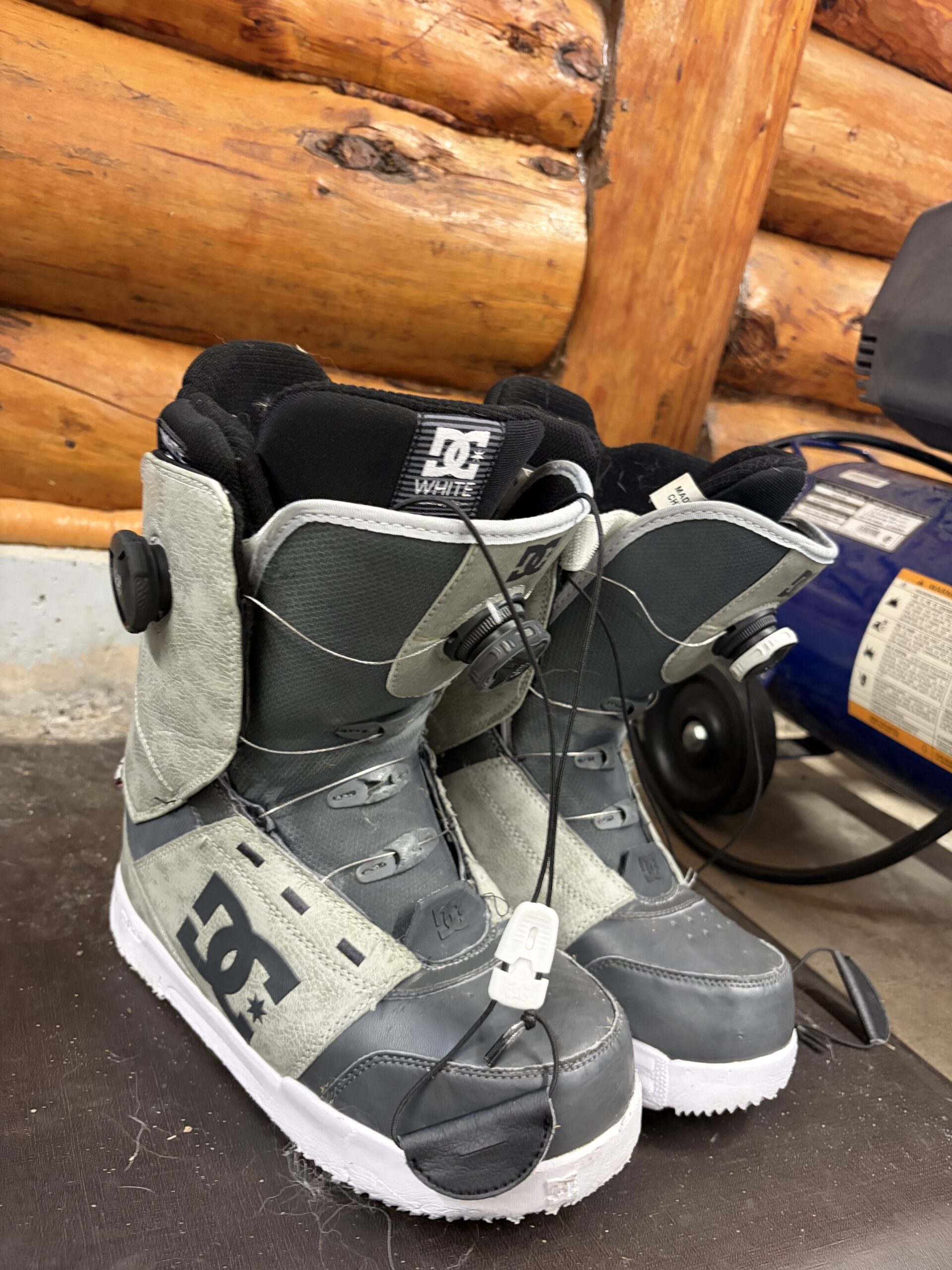 Good condition, size small. Meant for riders from 100-205 pounds. Ride A6 bindings and DC control boots sized 10.
