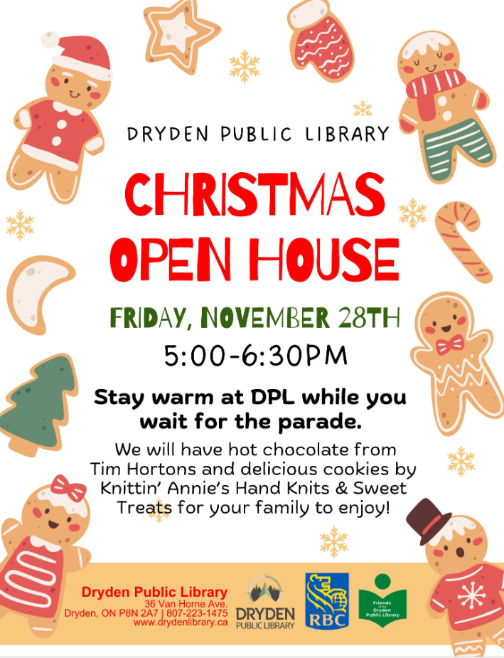 Come to the library while you wait for the parade to begin. We will have hot chocolate, cookies, and crafts for the kids between 5:00-6:30pm.