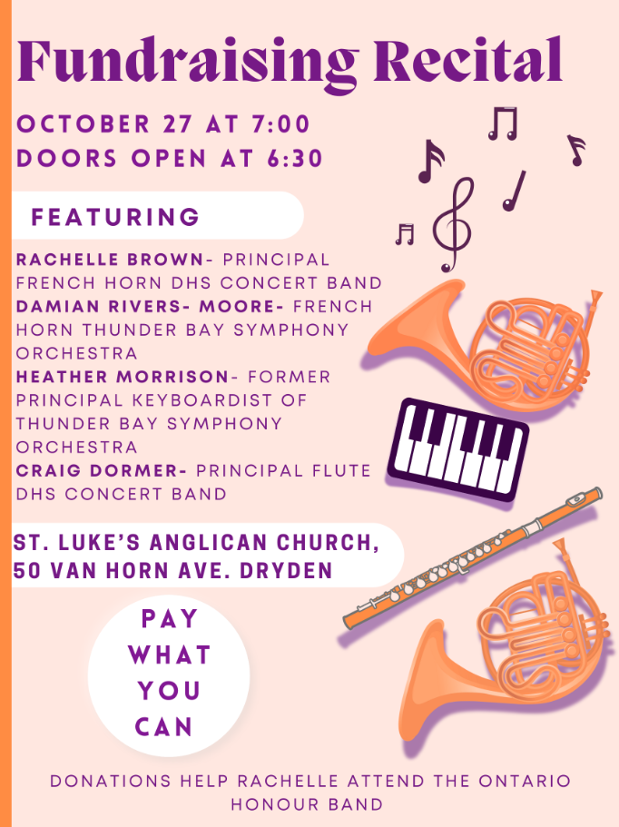 To help fund her trip, Rachelle will be holding a Music Recital on October 27, 2025 @ 7pm at St. Luke’s Anglican Church – 50 Van Horne Ave, Dryden. Everyone is welcome! Admission is ‘pay what you can’ at the door.