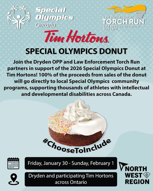 #DrydenOPP are proud to support Special Olympics with the Tim Hortons Special Olympics Donut! Swing by your local Tim Hortons this Friday and Saturday to grab one of these limited‑edition treats—100% of proceeds go directly to programs in our community. Whether you’re picking up one for yourself or a box to share, it’s a win […] -