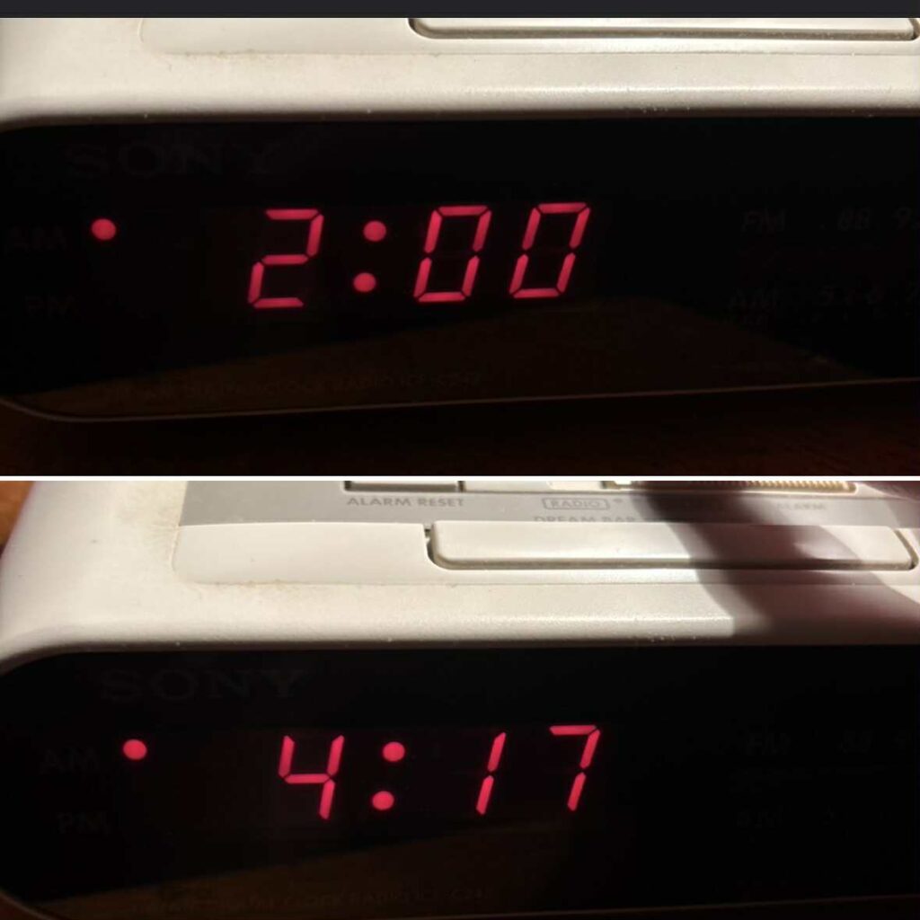 About 2 hours of sleep for me as you can see in the photos. I think it was worth it…right now. I may have a different answer in a few hours. I went to bed at 2am this morning and woke up to the jarring sound of the alarm just after 4am and then to work at 5am.