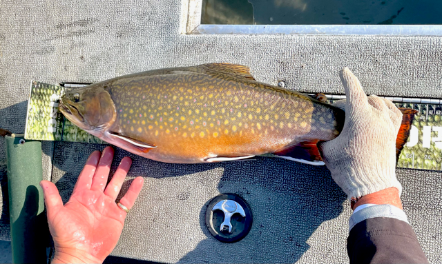 The hit was sudden and solid, and the battle was epic. Brook Trout are masters at using the fast currents to their advantage, and this fish was no different… weaving from one side of the boat to the other, and plunging deep trying to shake the hook.